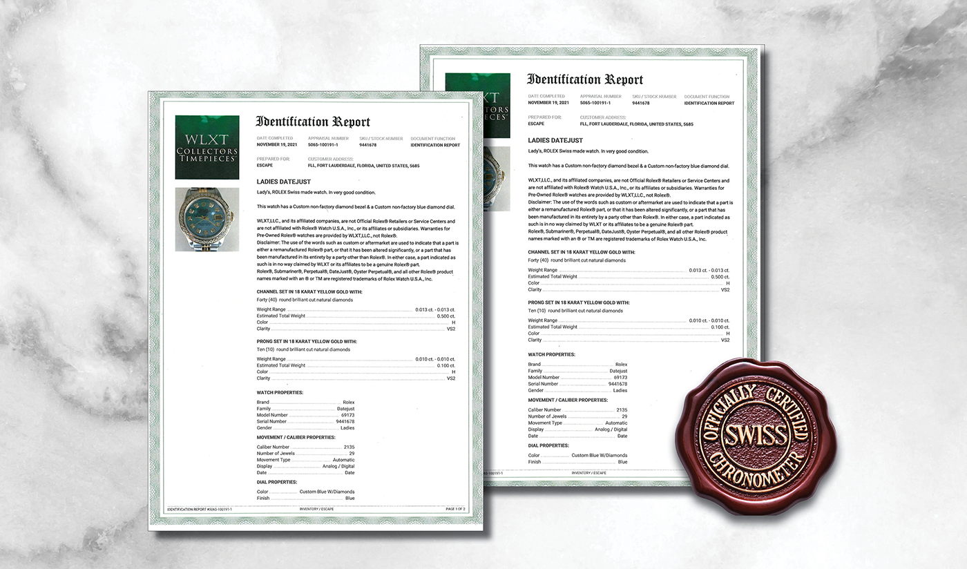 All watches go through a multi-point inspection by independent Swiss-trained watchmakers. Every component—visible and internal—is verified as genuine Rolex®.